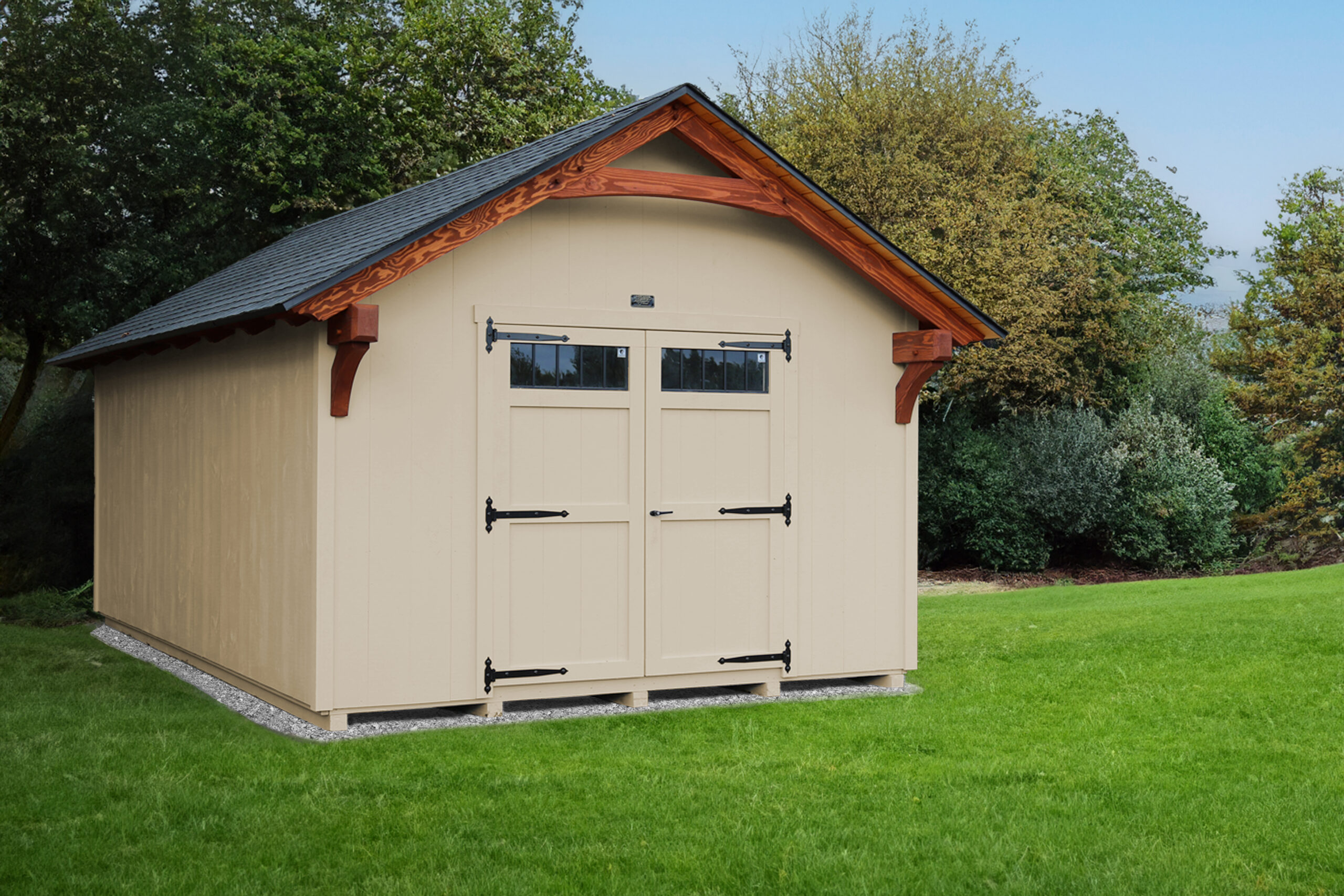 Explore our extensive selection of premium colors and materials to customize your timber frame shed to match your style and setting.