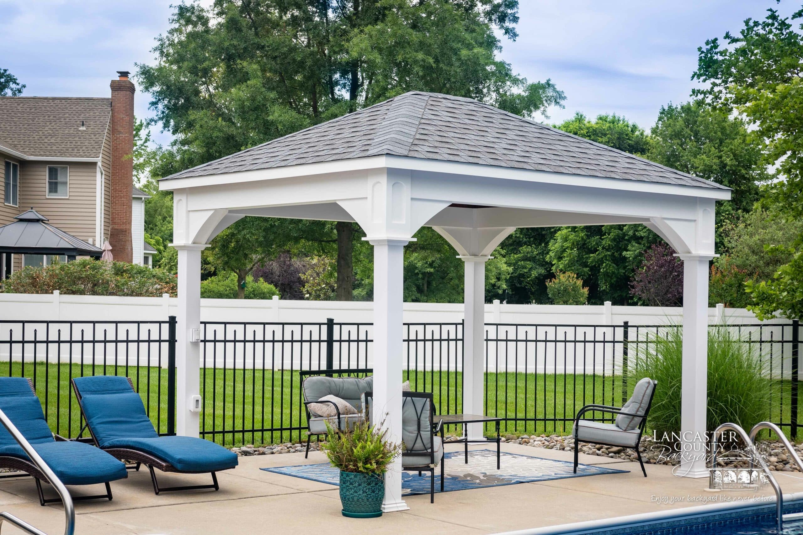 Choosing between a pergola and a pavilion comes down to what you’re hoping to get out of the space. One of the biggest distinctions is the roof; pavilions feature a fully covered top that offers more shelter from the weather, while pergolas use an open-slat design that lets in more light. Because of the added structure, pavilions usually come at a higher price point. Want to dive deeper? Take a look at our comparison of pergolas and pavilions.