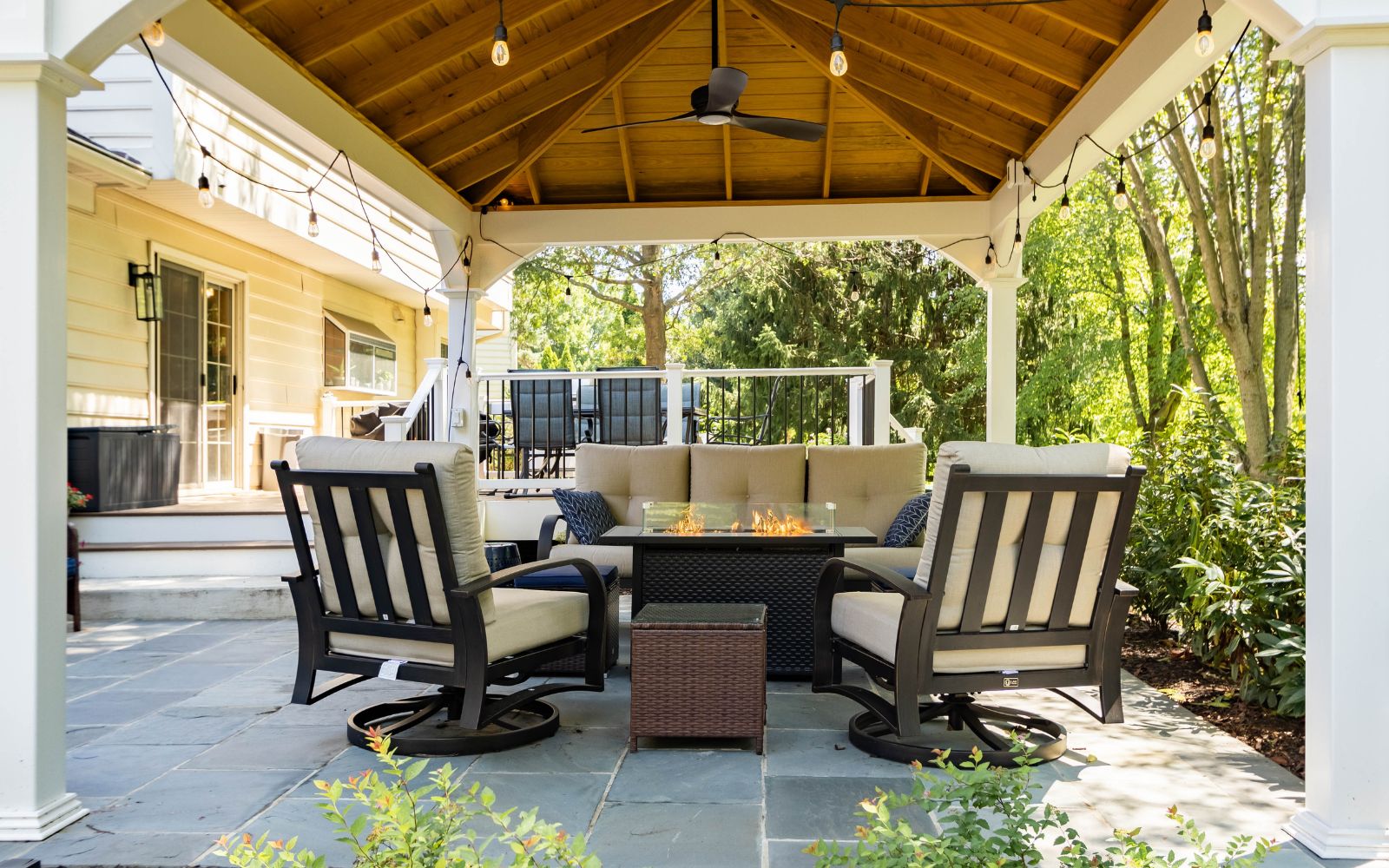 Elevate your backyard space as you entertain guests or relax in comfort, all while admiring the polished, contemporary look of the pavilion. Add a fireplace to keep warm during chilly nights or outdoor lighting, as this family has done.