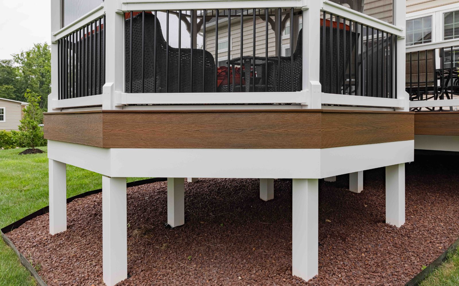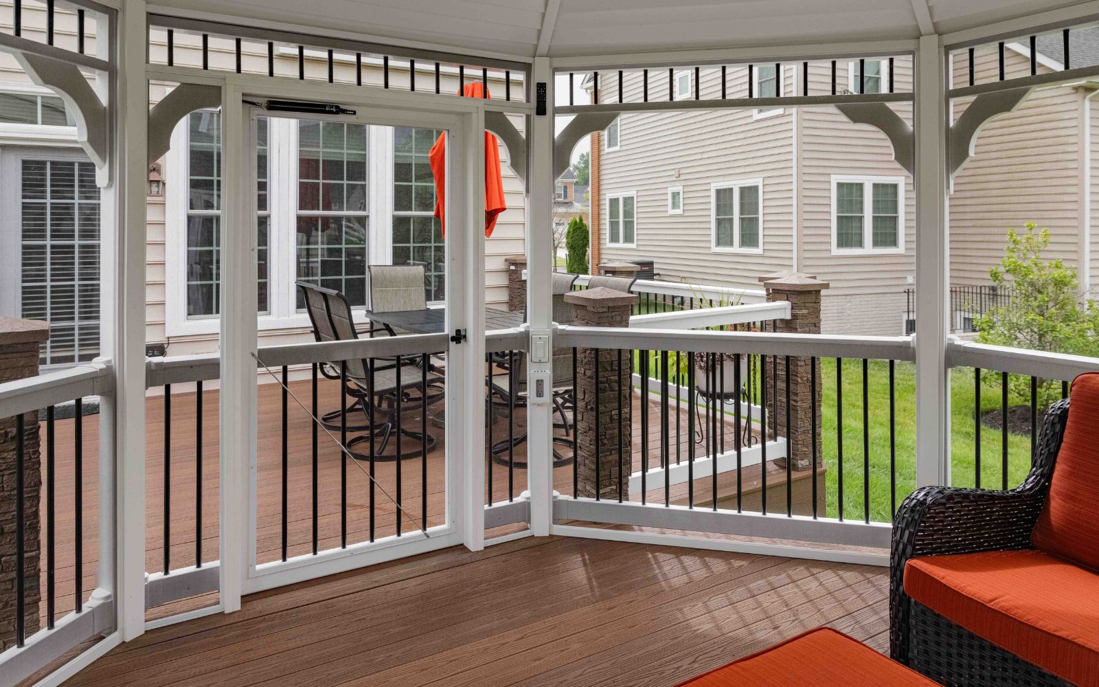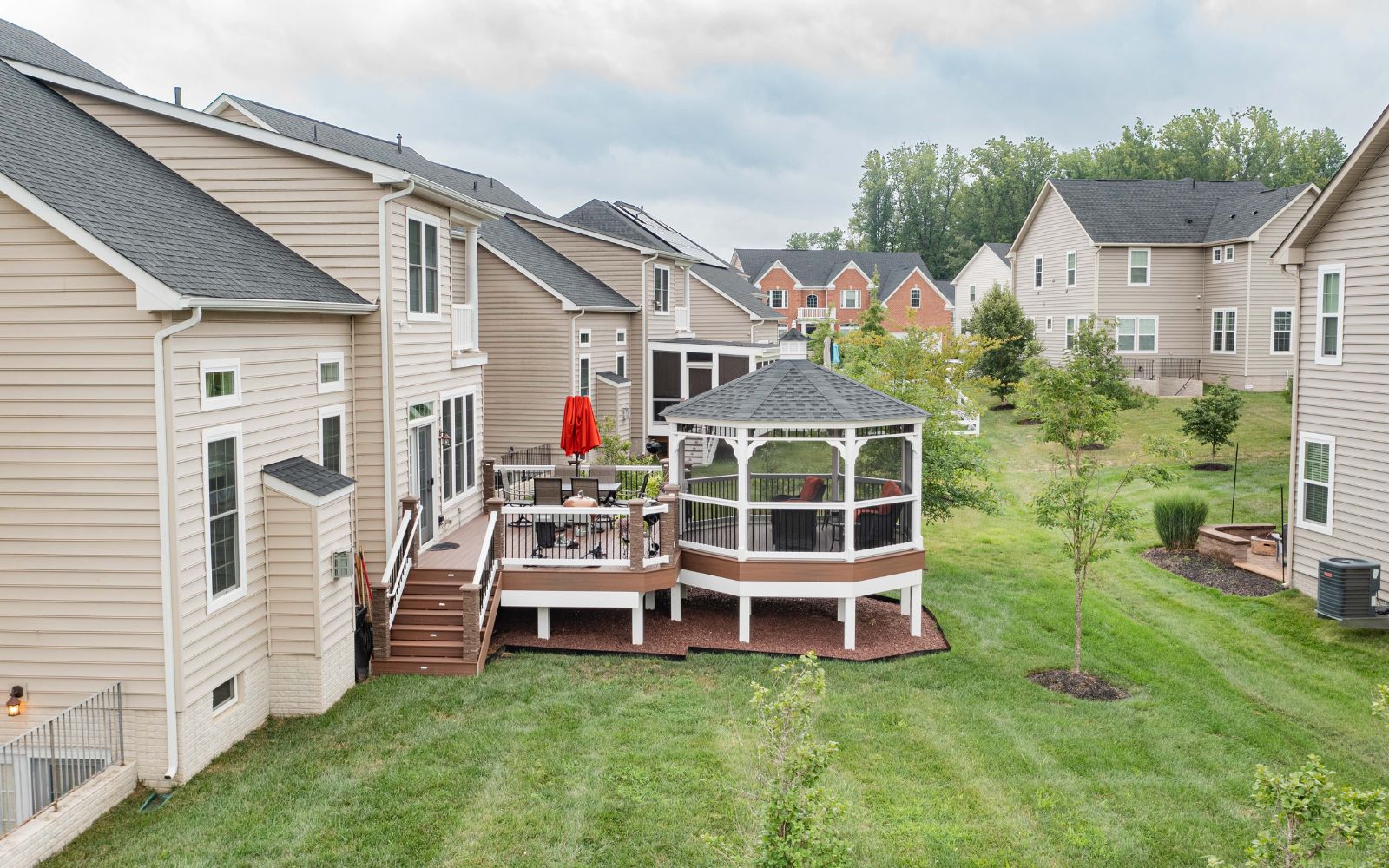 Check out this 14′ Octagon Vinyl Gazebo in Bowie MD attached to a back porch in this backyard. The bright vinyl creates a nice contrast with the yard and house and seamlessly joins the deck for a simultaneously inviting and sophisticated look.