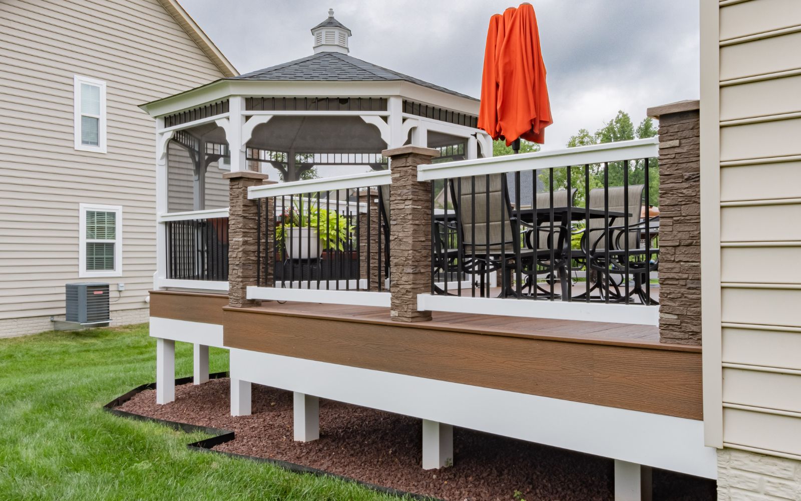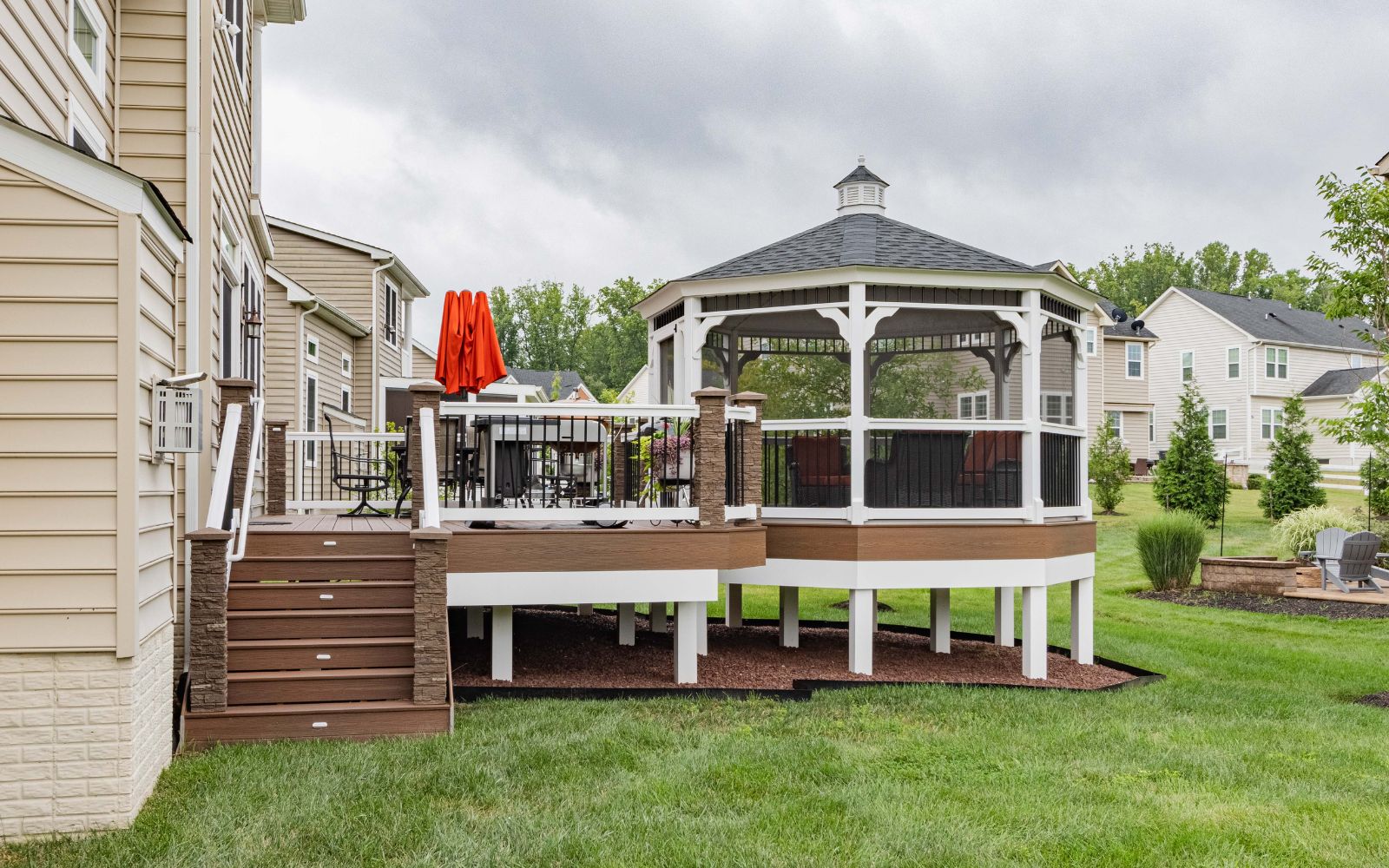 Lancaster County Backyard transformed this backyard space into a perfect place for quiet moments, conversations, and a great place to enjoy a good breeze. Built with treated southern yellow pine encased with vinyl sleeves and featuring a screened-in design for added protection, this gazebo offers a peaceful retreat in your own backyard for all the seasons.