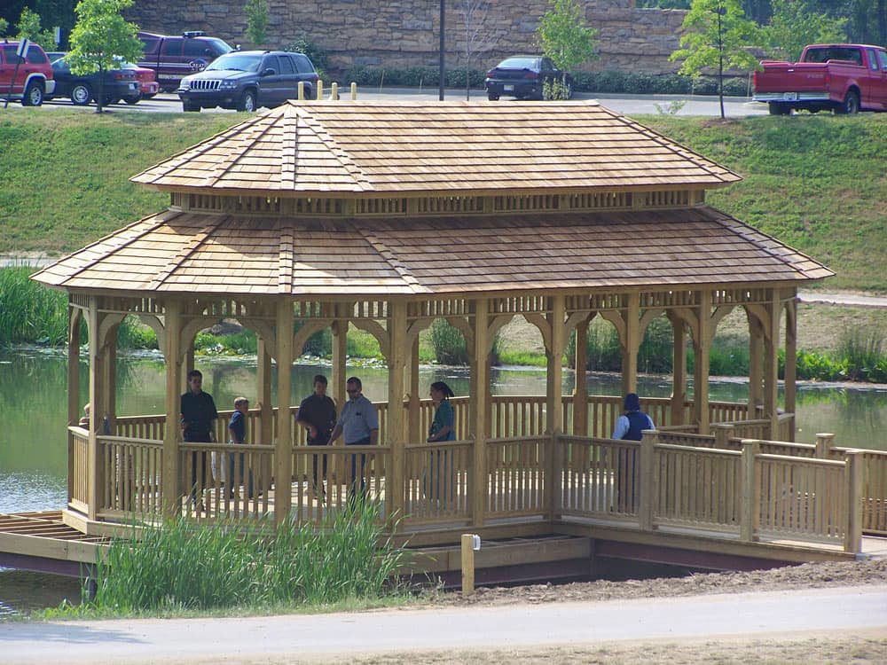 In 2006, we played a small role in some of the big changes at Creation Museum in Cincinnati, Ohio, with this 18×36 Oval Gazebo Project. This gazebo is huge, much bigger than most of our gazebo projects. Typically, a small oval or octagon gazebo has around 50 square feet of floor space, or even less. Conversely, this gazebo has around 600 square feet of floor space, which is over ten times bigger than that of a typically smaller size.