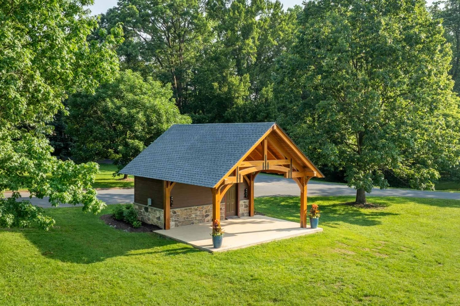 This 24×14 Grand Teton Pool House in Wilmington, DE, is a stunning addition to any backyard oasis. Regardless of whether you’re lounging poolside or hosting a summer gathering, this thoughtfully designed structure brings both functionality and visual charm to your outdoor space.