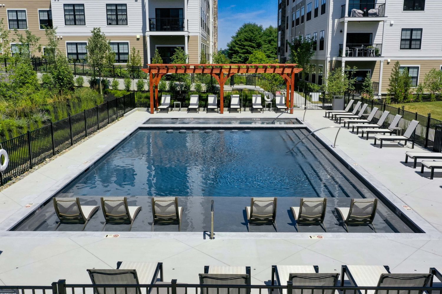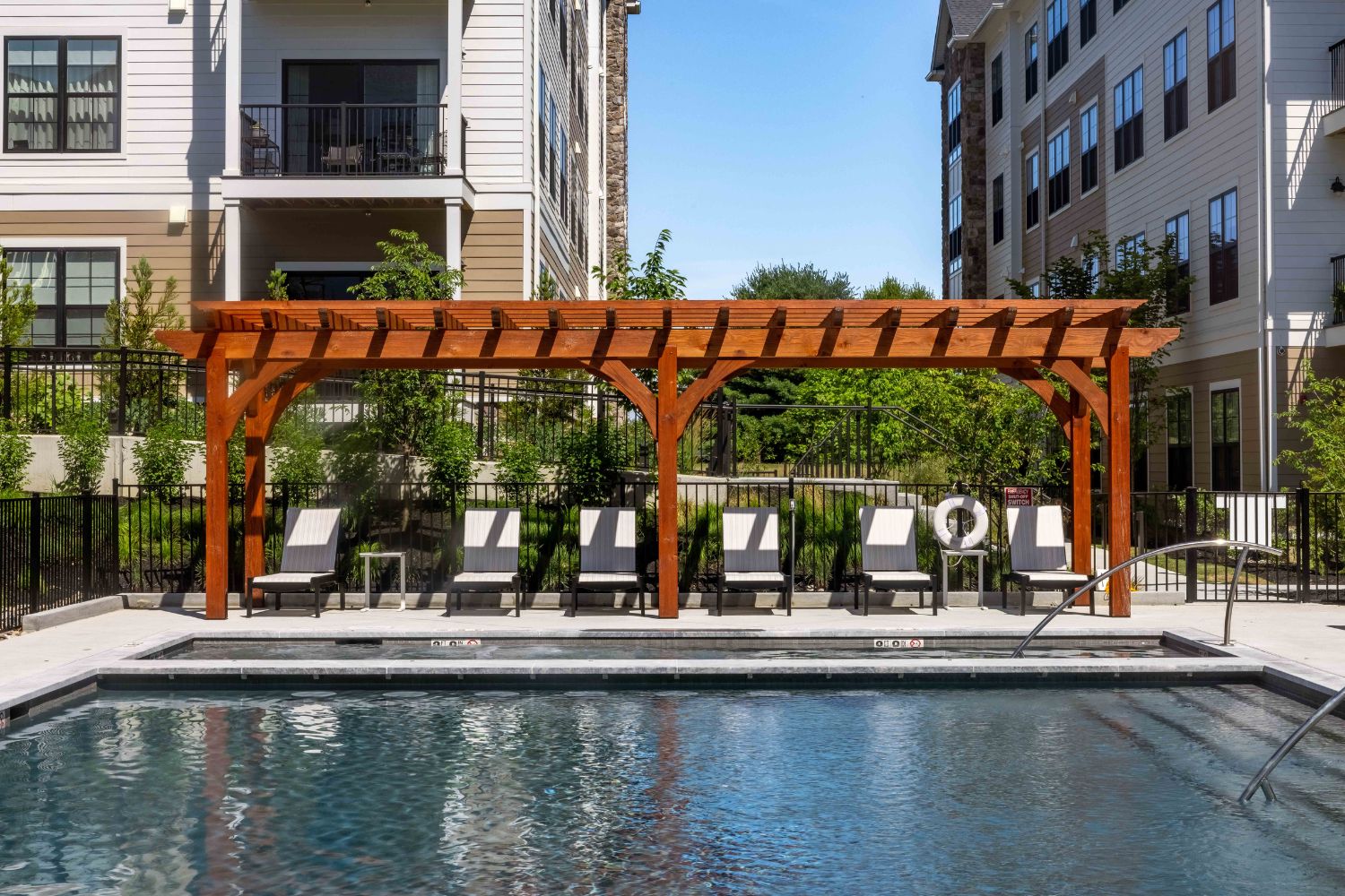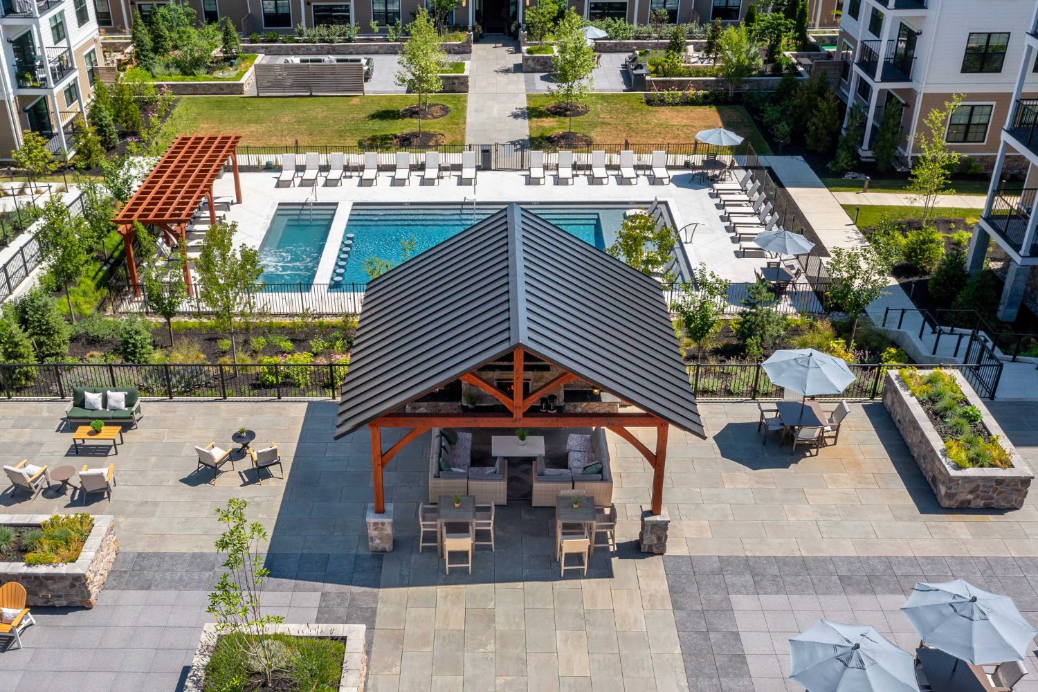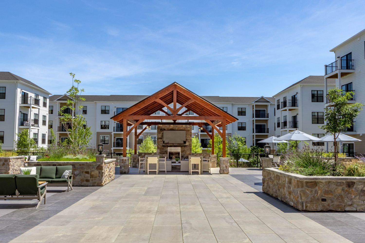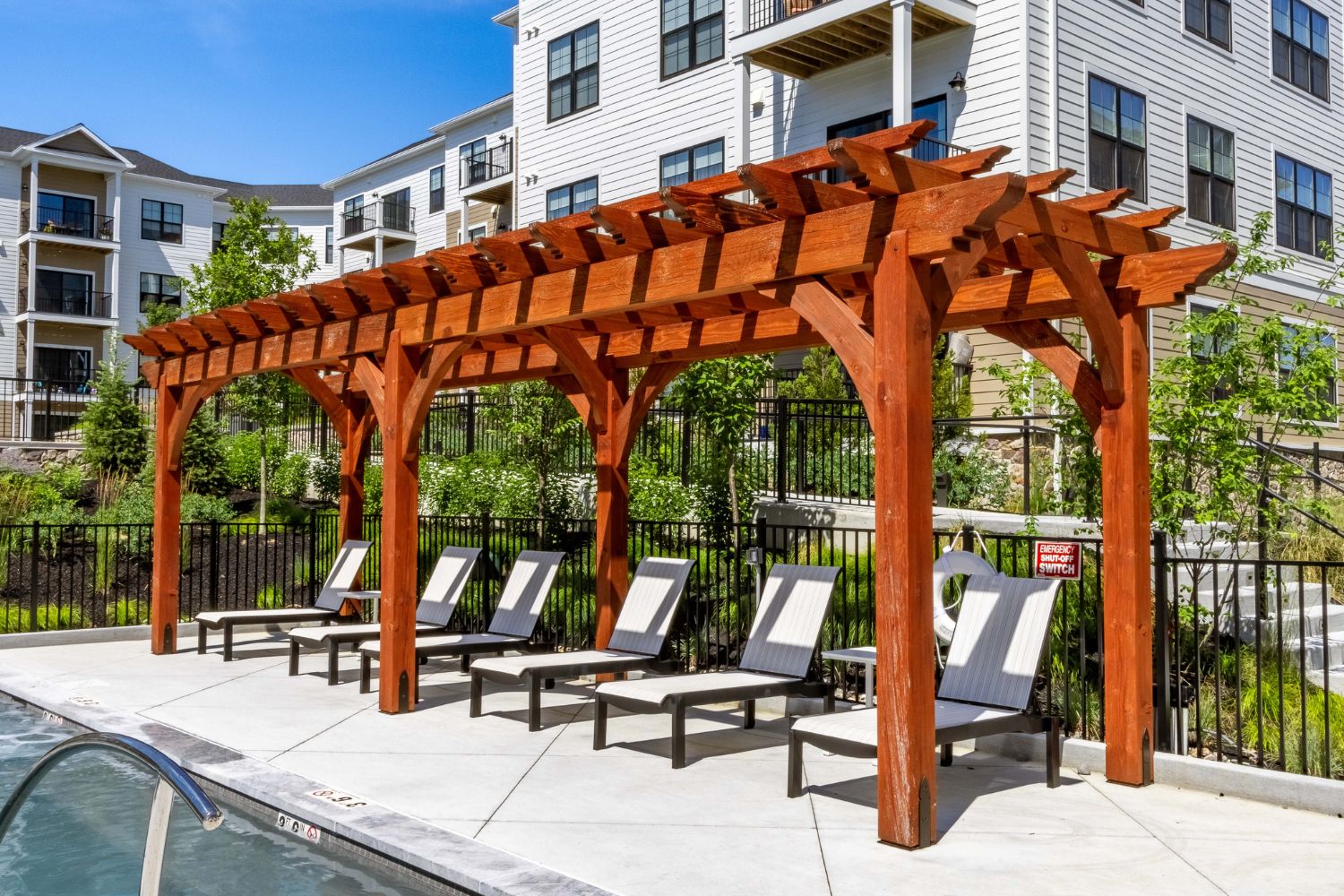 This apartment complex features both our 20×20 Kingston Pavilion and our 7×30 Boulder Pergola. The 20×20 Kingston Pavilion and 7×30 Boulder Pergola combo in Newtown Square, PA, creates a relaxation station of our wildest dreams. Sit poolside under the half-shade created by the Boulder Pergola and then relax under the cool shade created under the Kingston Pavilion. Or, in the cooler months, curl up by Kingston’s stone fireplace and TV.
