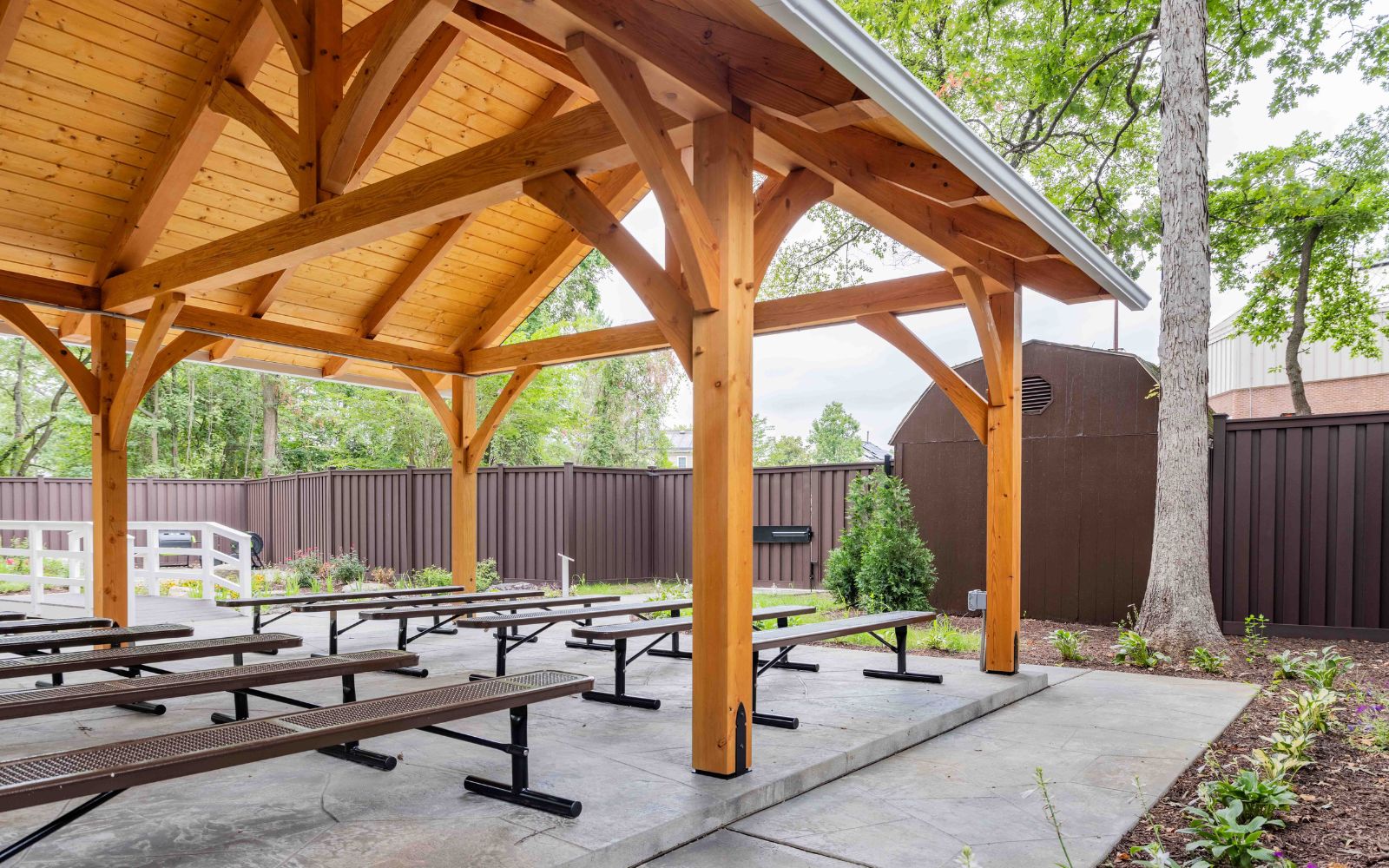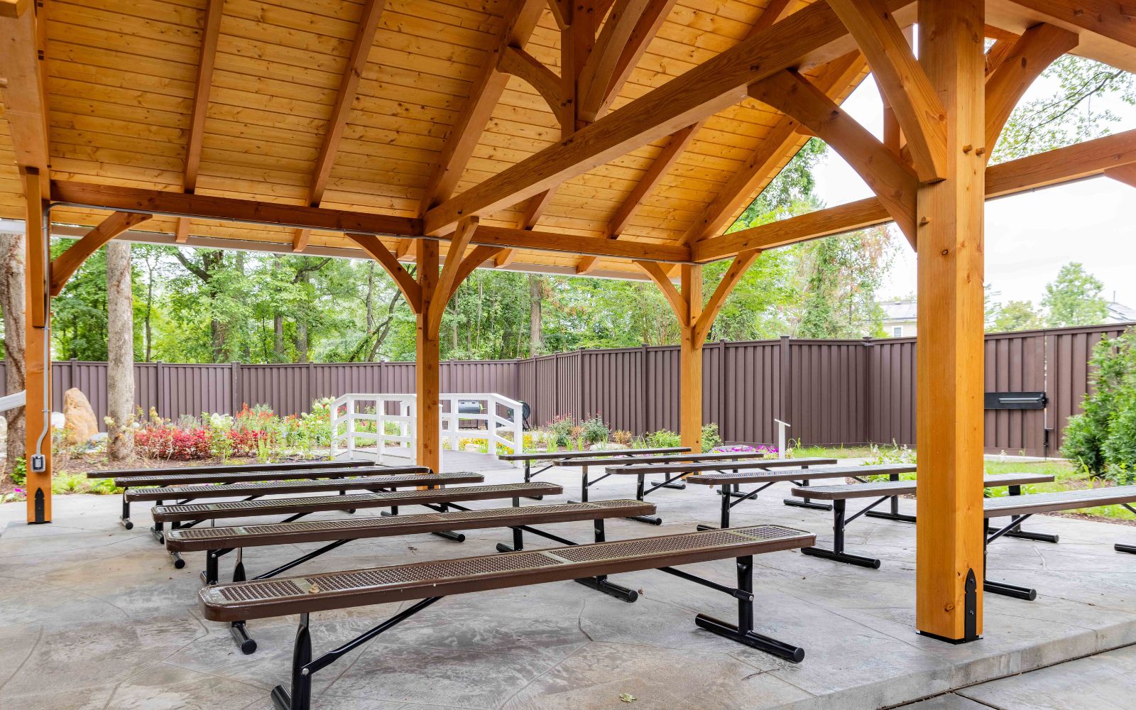 With its signature posts, trusses, and overhangs, the Kingston Timber Frame Pavilion brings a balance of natural beauty and durability to this outdoor space, ensuring a safe space for discovery for years to come.