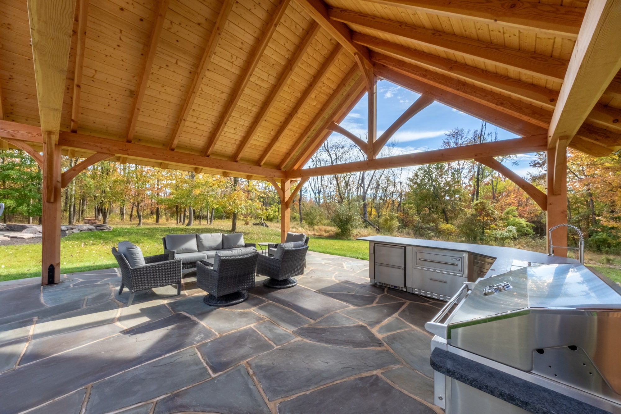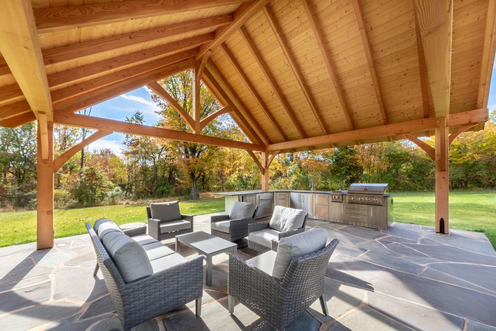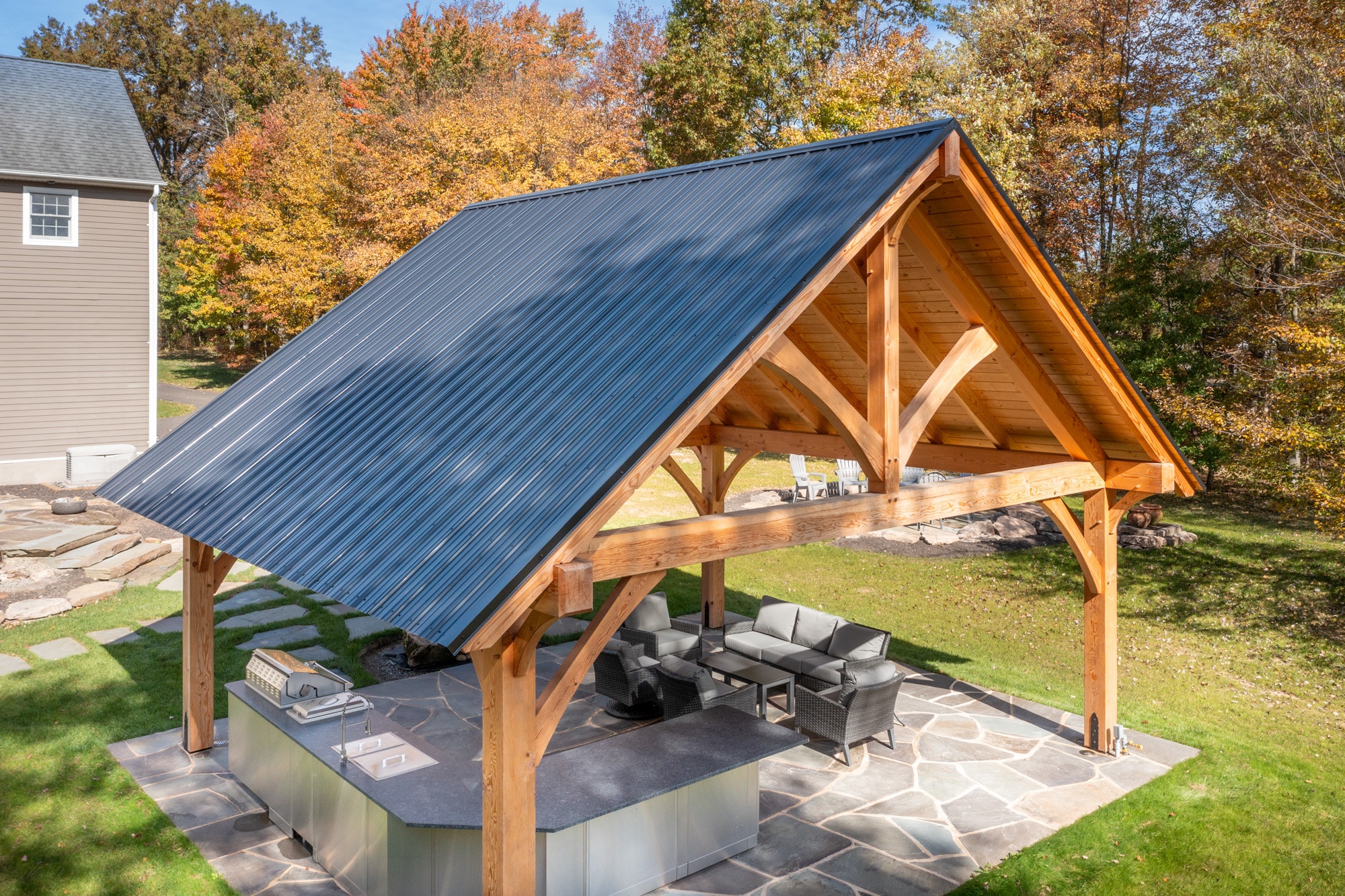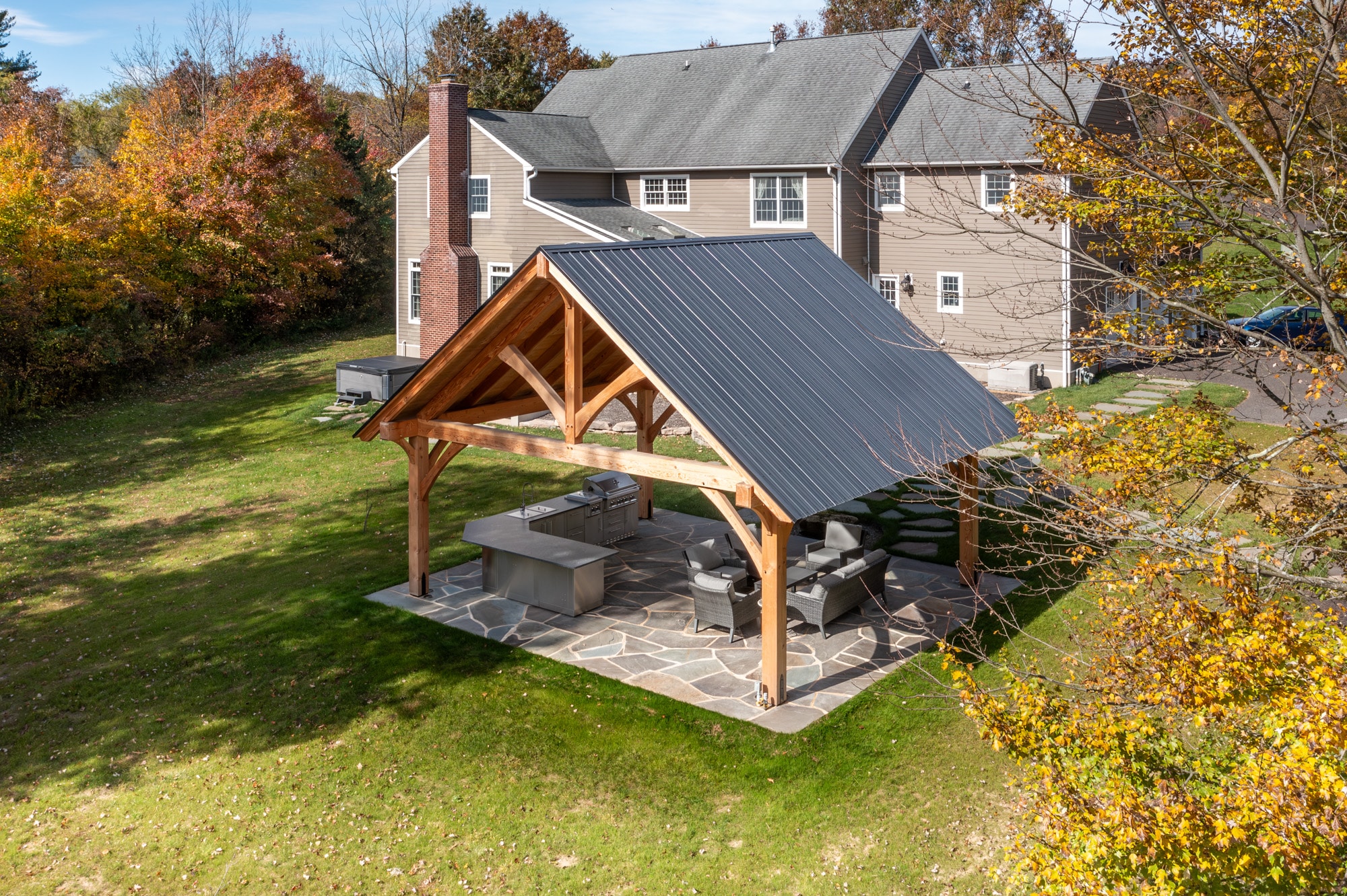 If you’re looking for the ultimate backyard upgrade, check out this 24×20 Kingston Pro Timber Frame Pavilion in Warminster, PA. This pavilion adds a beautiful outdoor living space, complete with a built-in grill, sink, and seating area. It’s the ideal place to host cookouts with friends and family.