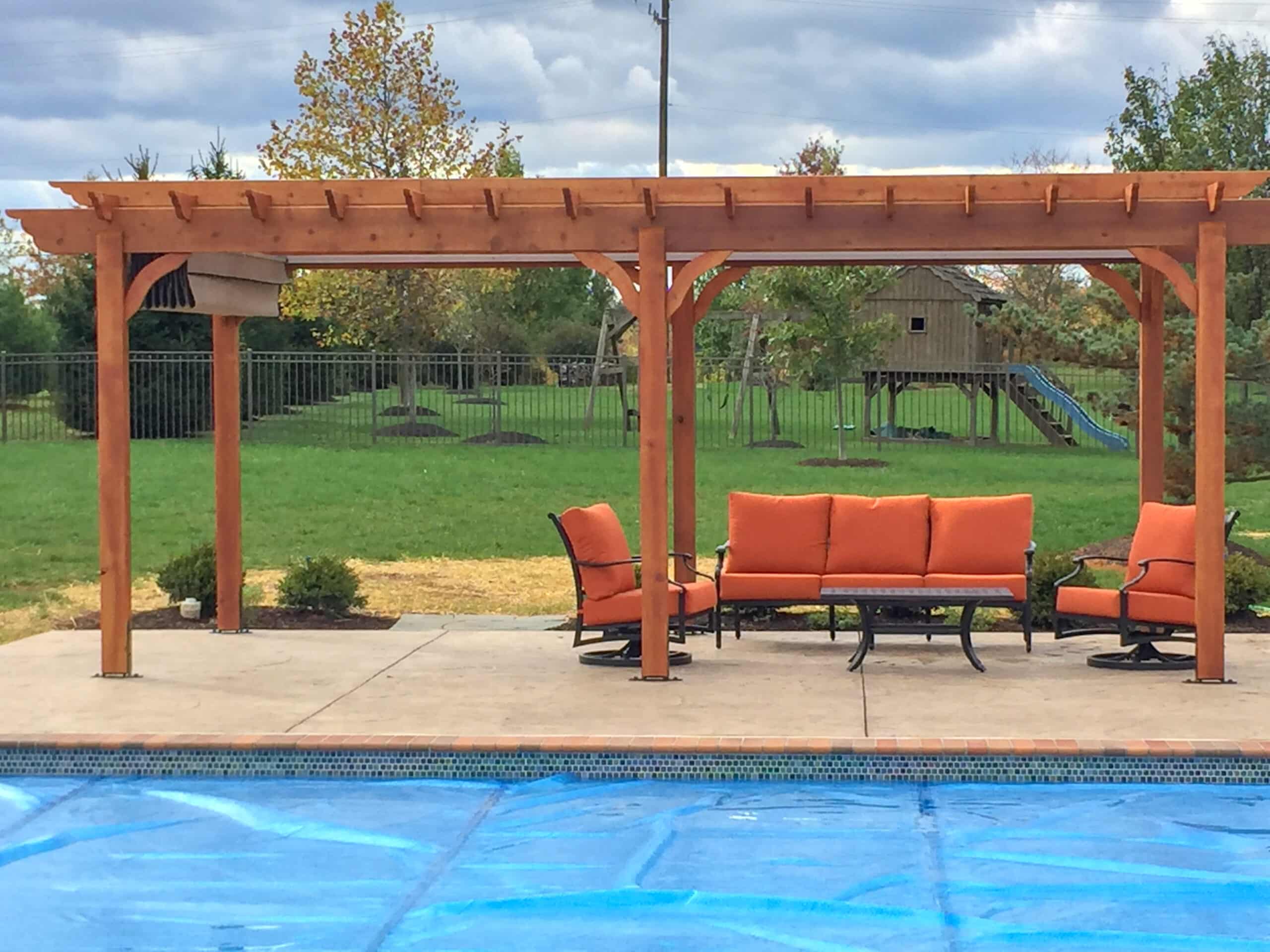 When Jon, the owner of this cedar pergola, saw the quality of our buildings, he decided he would purchase both a pergola and a shed. He wanted a pergola as a centerpiece to complement the surroundings and a shed to store his pool equipment and supplies. Consider his enthusiastic review: