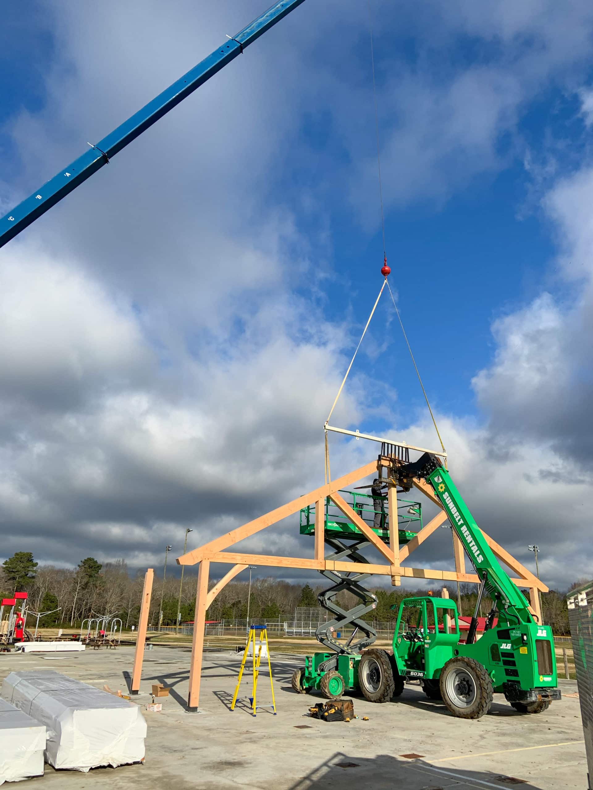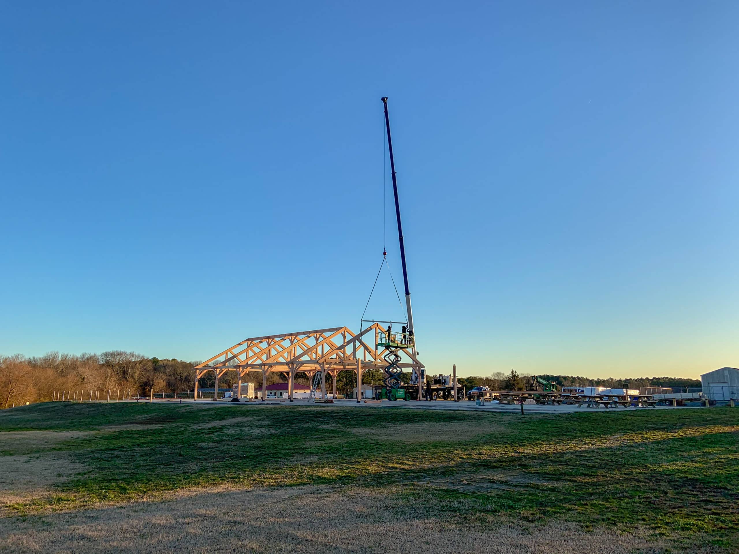 Built to the height of neighboring trees, this 40 x 80 Kingston Timber Frame Pavilion captures the essence of the outdoors while providing sturdy protection from the harsher elements.