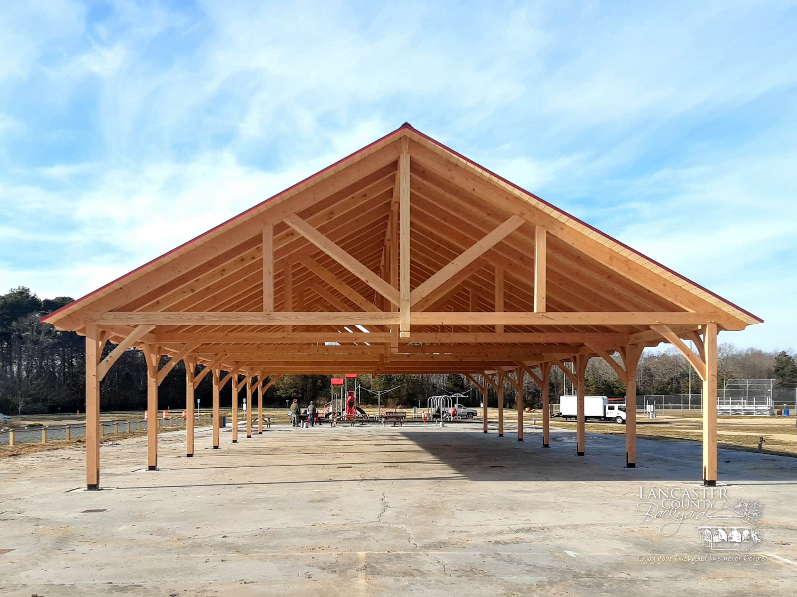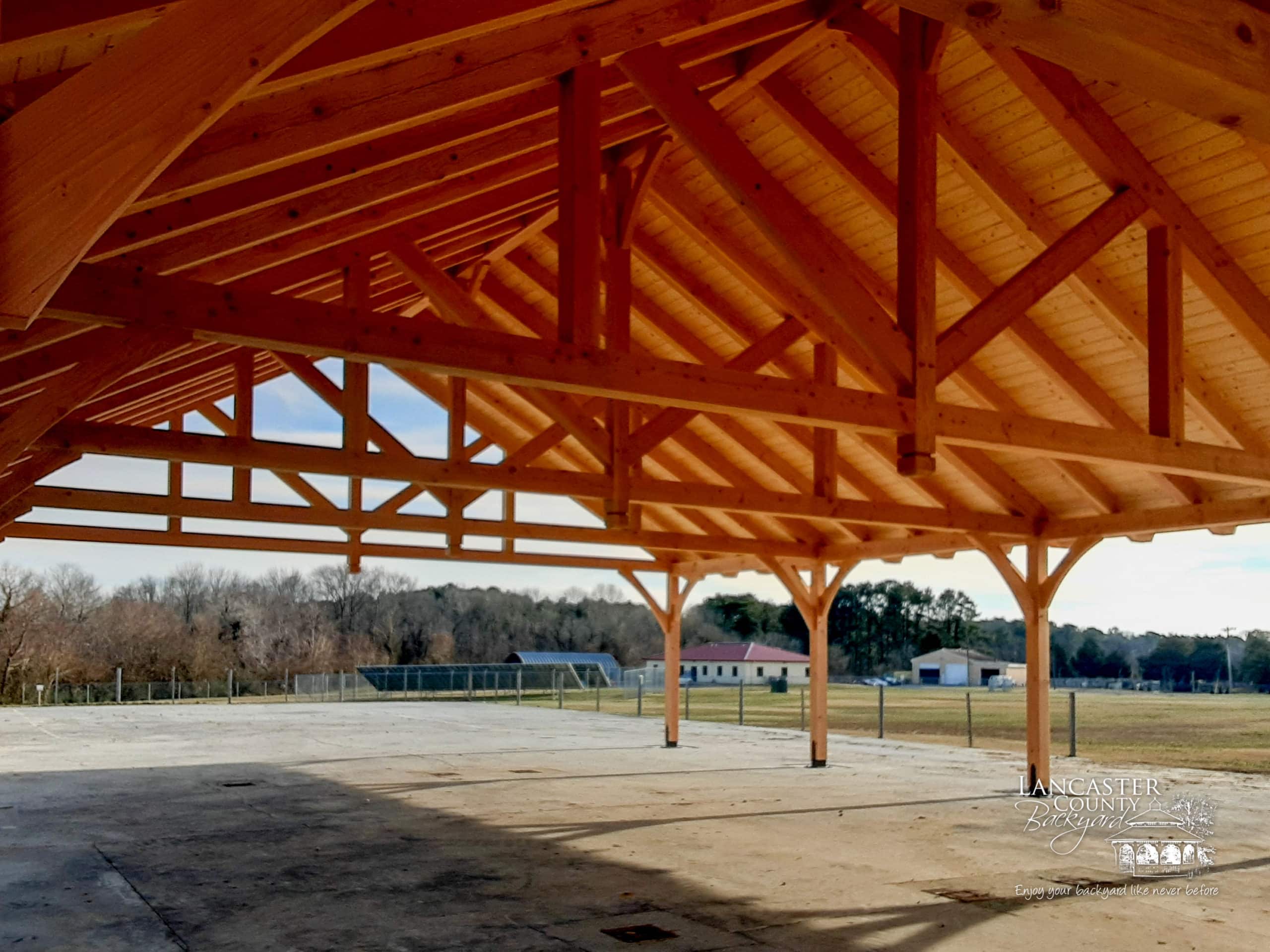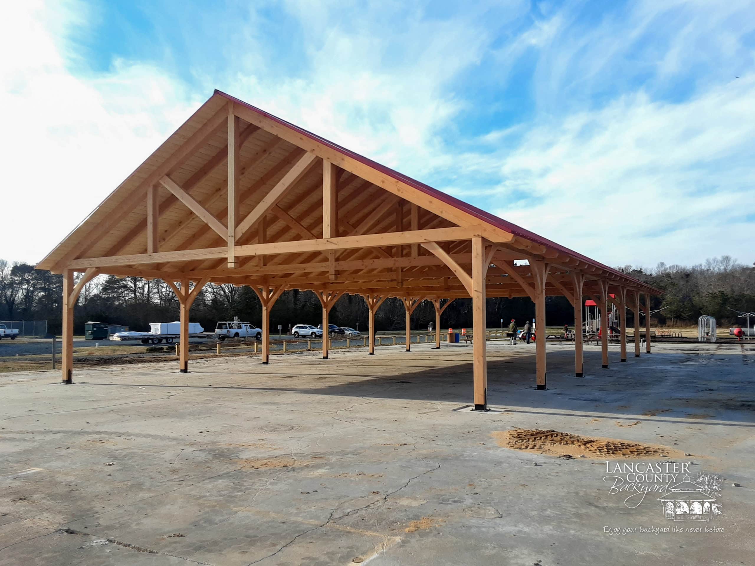 Crafted from our best Douglas fir, the structure provides several practical uses for park visitors. Imagine hosting a birthday, graduation, or wedding party here or relaxing in the shade created by the beautiful ceiling. The craftsmanship of the exposed timber ceiling is a testament to Lancaster County Backyard’s dedication to beautiful structures and outdoor happiness.
