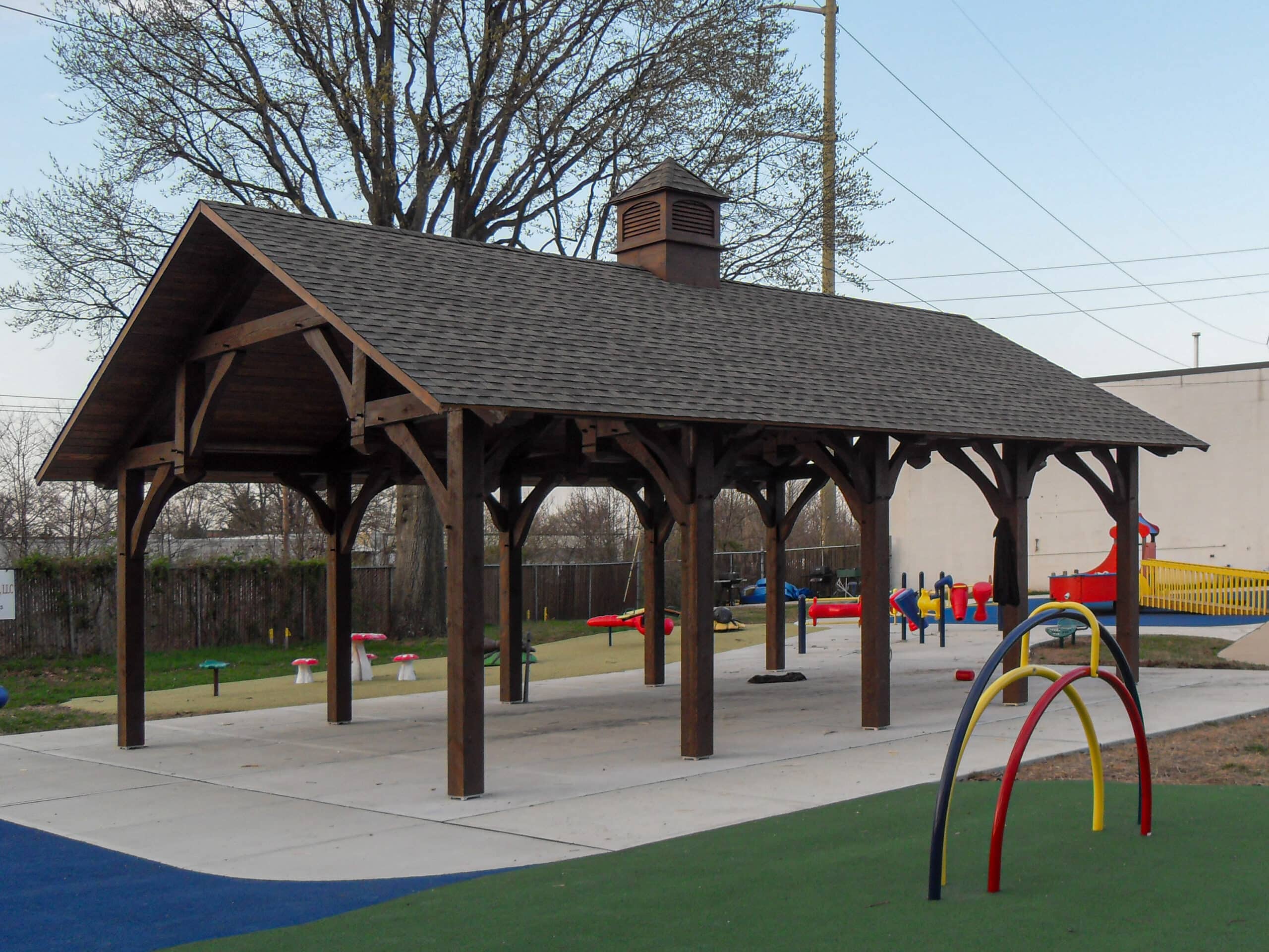 This beautiful 20×32 Denali Timber Frame pavilion looks as good at the day-care center as it would in your backyard or local community park. With this Mortise and Tenon post and beam pavilion, your backyard, daycare, or business will combine a touch of classic with modern. This post and frame day-care pavilion can be customized for color, roofing material, and much more.