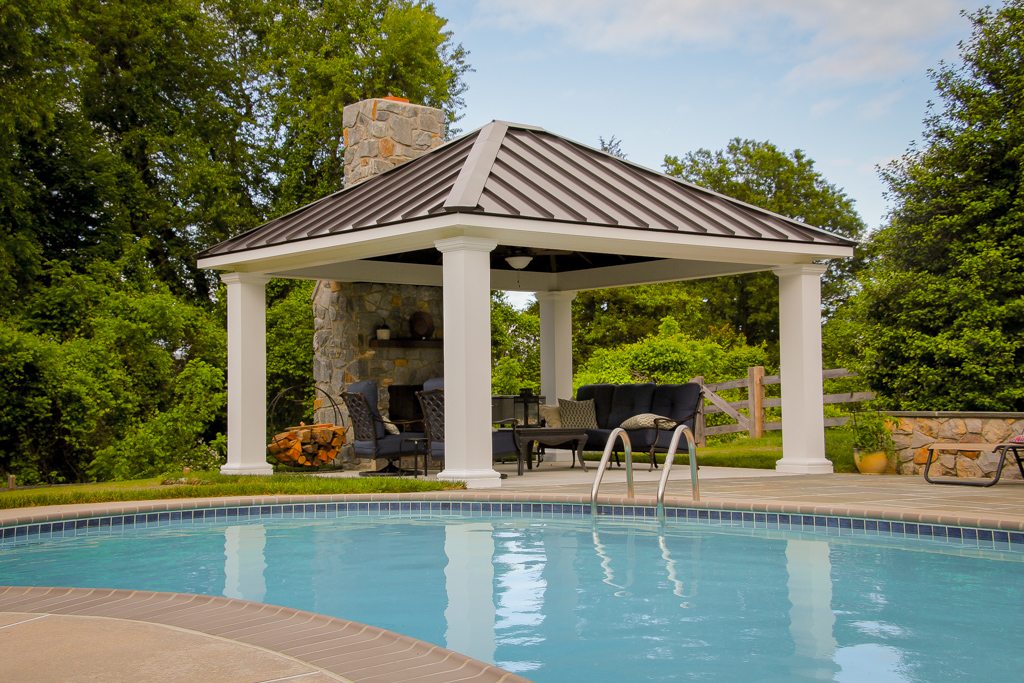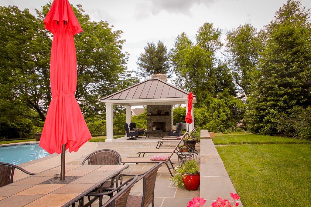 When this homeowner in Chester Springs, PA, purchased her house, it featured a beautiful pool accented by a charming stone patio. A pool is a great spot for getting wet in the hot sun, but as families grow, they often long for places to relax in the shade. With children moving off to college and starting their own homes, this customer reached out to us to build a permanent luxury pavilion to provide a more complete outdoor experience for her loved ones. The reward of this investment was well worth it! Here’s the result in her own words: