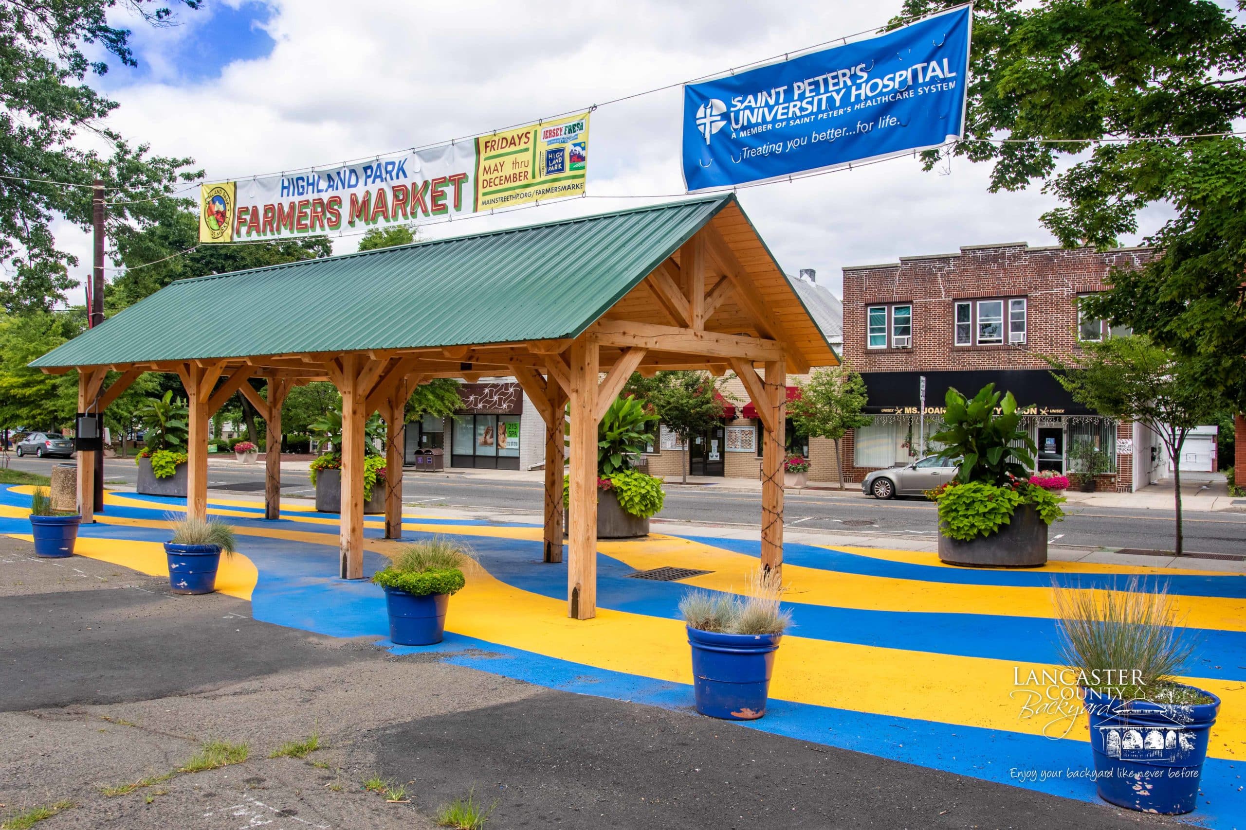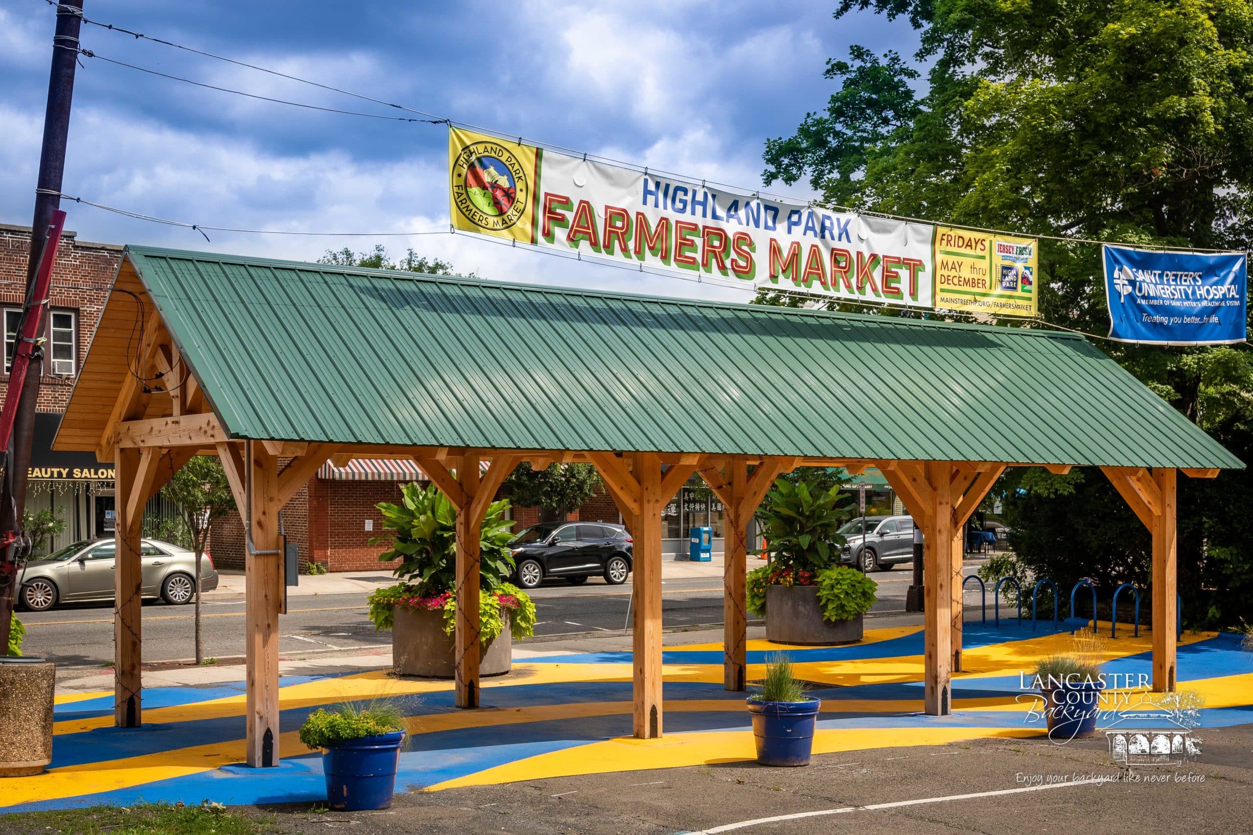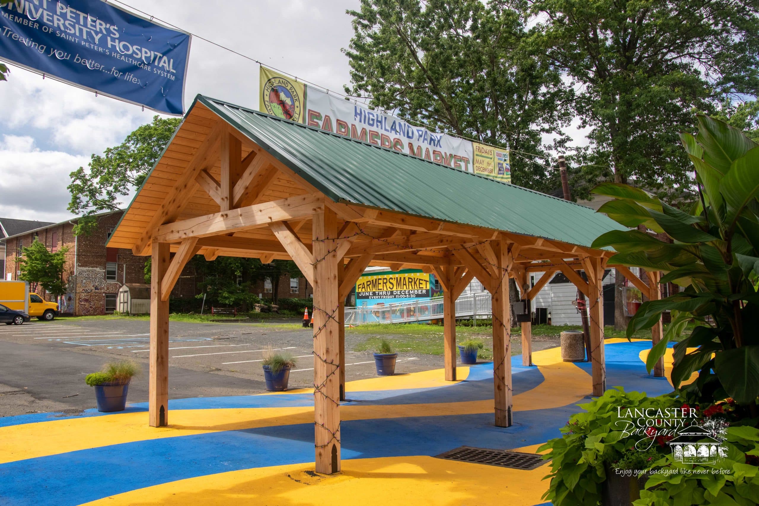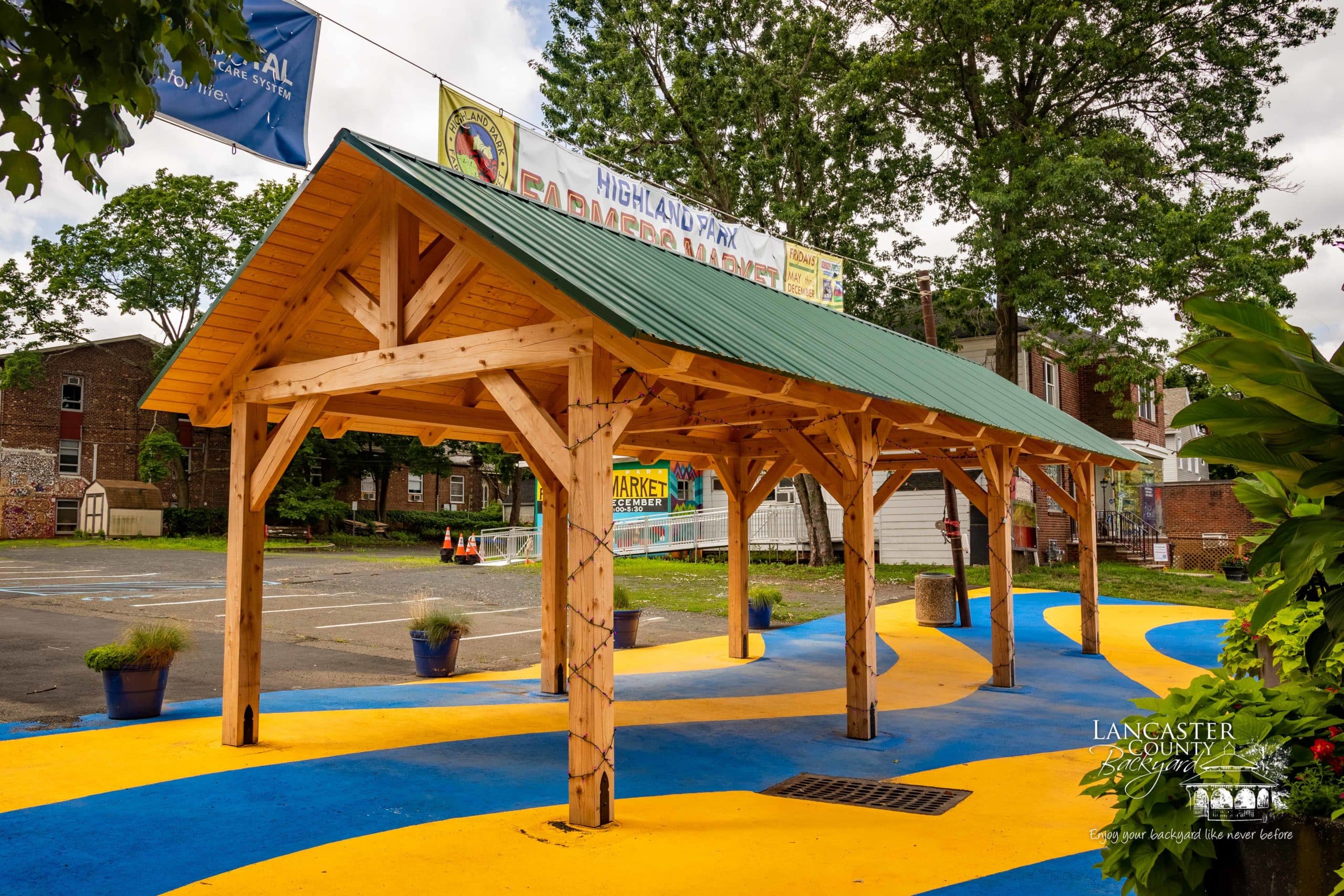 We recently completed this beautiful 12×36 commercial Timber Frame Pavilion in Highland Park, NJ, for Main Street Highland Park. This Kingston Pavilion was designed specifically to showcase vendors’ products and goods and serve as an entrance to the Farmers Market that runs year-round. Thanks for working with us, Main Street Highland Park. We trust this Pavilion will be an asset to the town of Highland Park, NJ.