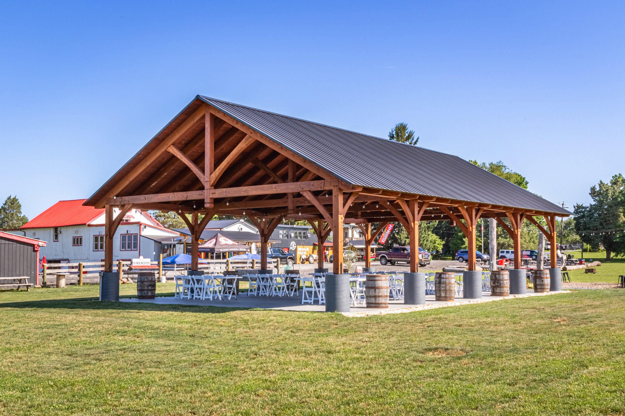Our most popular timber framing product is our timber frame pavilions, but we can also produce timber framing storefronts, barn fronts, interior beams, attached pavilions, and more. Get in touch to discuss your unique project!