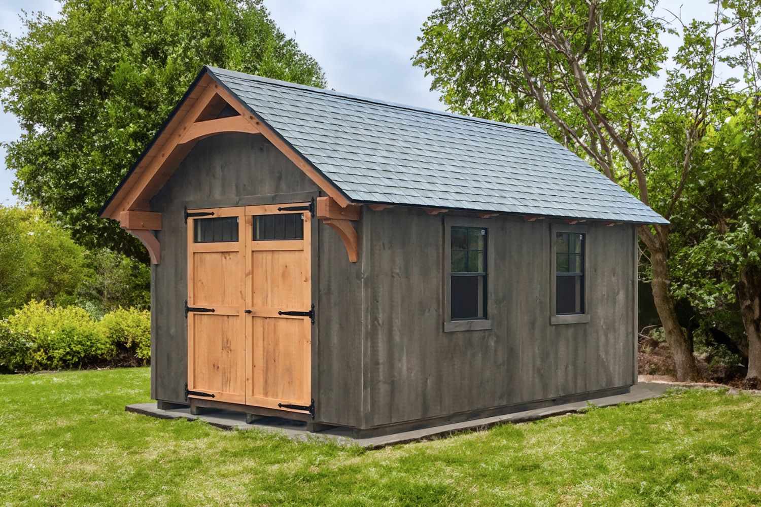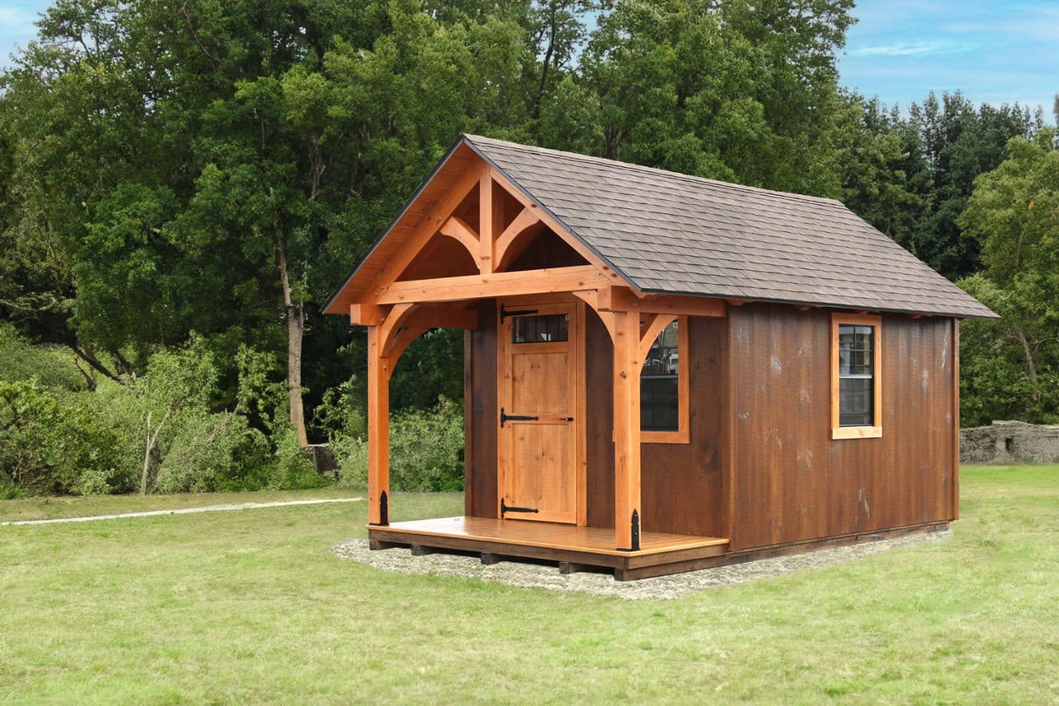 Timber frame construction is a traditional and centuries-old wood construction method. Our sheds have the look of a traditional timber frame building and, with a fully upgraded timber frame interior, a spacious, sturdy timber frame interior as well. Without the upgrade, our sheds provide the look of a timber frame building with the reliable storage you could expect from a quality shed from Lancaster County Backyard. Choose a timber frame shed for a gorgeous storage space that will last!
